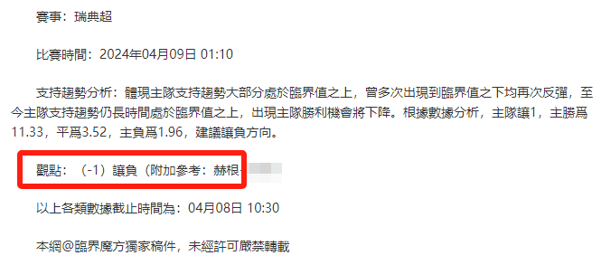 【解鎖內容為以上賽事支持趨勢預測圖展示,以及根據分析預測圖進行相對低機率方向觀點判斷。解鎖內容僅代表個人知識領域觀點,與本網站無關】