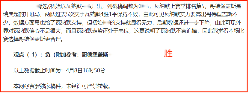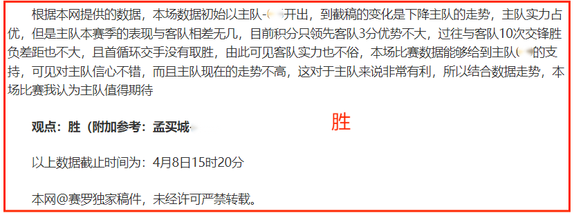 (温馨提示:观点回顾为已完场赛事的统计,并不能代表未来的观点预测结果走势,观点仅为其个人意见,与平.台无关。资讯仅供体育爱好者浏览,并不构成购.彩建议,任何人不得用于非法用途,请广大用户理性消费。)