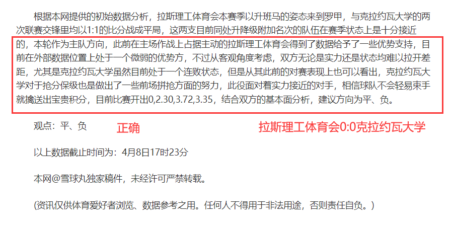(温馨提示:观点回顾为已完场赛事的统计,并不能代表未来的观点预测结果走势,观点仅为其个人意见,与平.台无关。资讯仅供体育爱好者浏览,并不构成购.彩建议,任何人不得用于非法用途,请广大用户理性消费。)