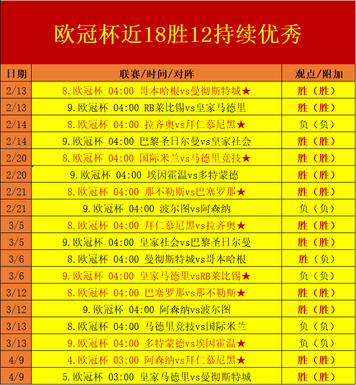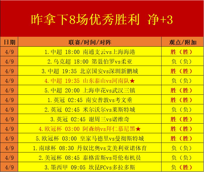 昨天完成赛程8场胜利,早中场的中超板块和欧冠领衔的欧赛精选交出的优秀的数据击中能力!单日取得净+3的正向增长!在过去的半年时间里,笔者交出了连续18个胜利旬计划的增长表现,数据击中能力整体稳定,当中出现微弱的阶段数据调整属于合理范围,总体数据净增依然体现出了数据模块对主流赛程的积极调整能力,本日是4月上旬计划的收官日赛程,本旬主要目标是拿下笔者的第19个胜利增长旬计划,继续保持对数据模块的信任和追踪,才是真正能够收获正向增长的关键动作,本日继续精选值得关注的焦点赛程进行组合冲击,争取尽快与大家携手回到胜利增长轨道!