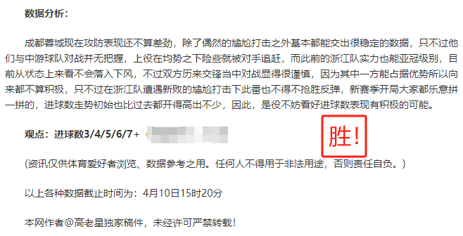 (温馨提示:观点回顾为已完场赛事的统计,并不能代表未来的观点预测结果走势,观点仅为其个人意见,与平.台无关。资讯仅供体育爱好者浏览,并不构成购.彩建议,任何人不得用于非法用途,请广大用户理性消费。)