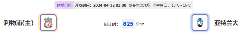 北京时间04月12日03时00分,欧罗巴杯2023-2024赛季半准决赛比赛,利物浦vs亚特兰大,主队现时遭遇不胜士气有不少的打击,本次主场迎战意甲上游之一的亚特兰大,能否顺利捍卫主场重新抢分抢胜?让我们拭目以待!
