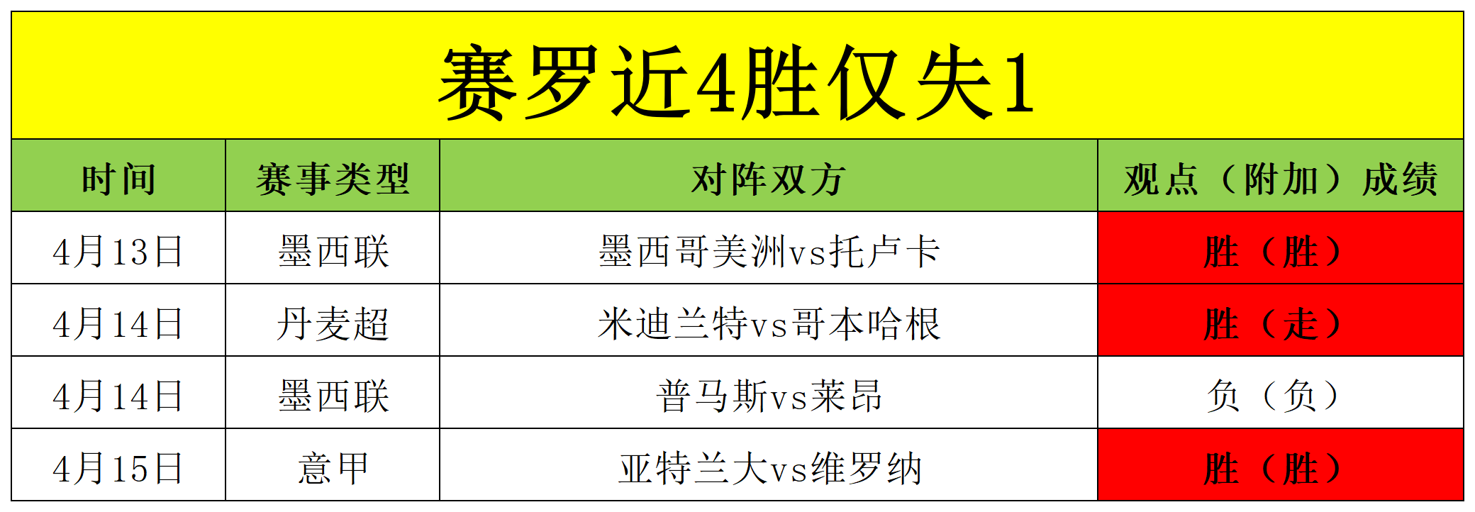 昨天的意甲赛事准确打出,近期分享的4场赛事只有一次失手,今天我们再接再厉。