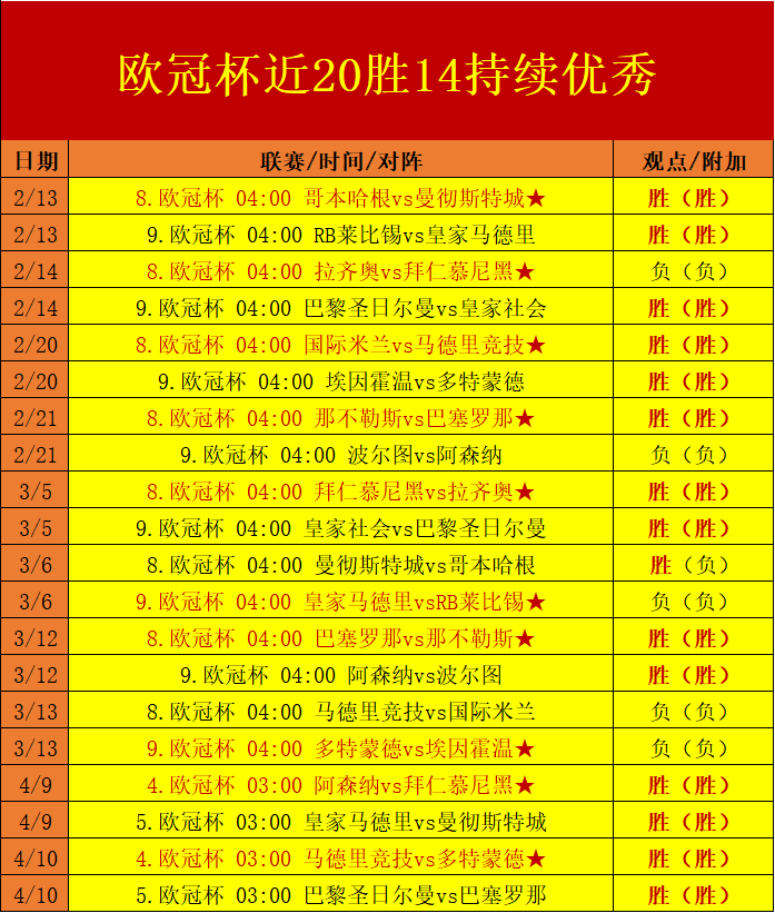 (温馨提示:观点回顾为已完场赛事的统计,并不能代表未来的观点预测结果走势,观点仅为其个人意见,与平.台无关。资讯仅供体育爱好者浏览,并不构成购.彩建议,任何人不得用于非法用途,请广大用户理性消费。)