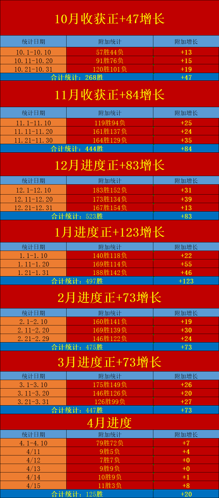 在过去的半年时间里,笔者交出了连续19个胜利旬计划的增长表现,数据击中能力整体稳定,当中出现微弱的阶段数据调整属于合理范围,总体数据净增依然体现出了数据模块对主流赛程的积极调整能力,此前在上旬的赛程计划里也是以一个低开高走后发先至的数据爬升能力回到胜利净增的轨道,本旬主要目标是拿下笔者的第20个胜利增长旬计划,继续保持对数据模块的信任和追踪,才是真正能够收获正向增长的关键动作,本日继续精选值得关注的焦点赛程进行组合冲击,争取尽快与大家携手回到胜利增长轨道!