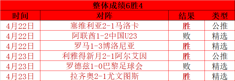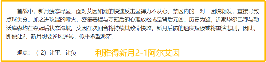 昨天的公推赛事再次取得胜利,利雅得新月2-1阿尔艾因,阿尔艾因在常规时间捍卫数据且晋级下一轮;精选赛事:拉齐奥2-1常规时间战胜尤文图斯,拿下数据。昨天整体成绩3胜2!今晚继续加油!