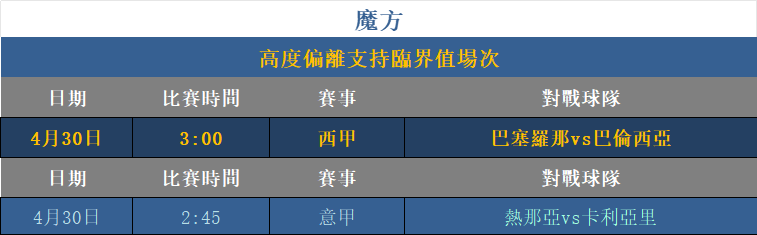 利用「魔方關系」進行支持趨勢預測分析,超越臨界數值之上可視為低機率方向,此方式對比賽方向分析有顯著幫助效果。