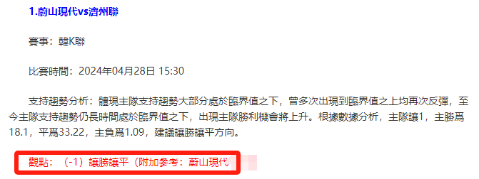 【解鎖內容為以上賽事支持趨勢預測圖展示,以及根據分析預測圖進行相對低機率方向觀點判斷。解鎖內容僅代表個人知識領域觀點,與本網站無關】