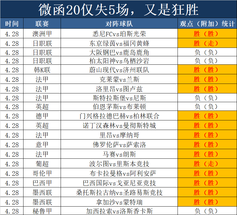 1、昨天20仅失5,又狂胜了,昨天值得称赞的依然是欧洲主流联赛,取下9胜7的成绩,今天继续狂胜节奏。