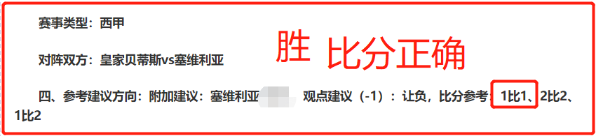 9、西甲:皇家贝蒂斯vs塞维利亚(胜)√:该场比赛属于正路的数据,贝蒂斯开出了主场优势的数据,在初始就已经可以看出,贝蒂斯强开,因为西甲的基本面参考范围在60%,塞维利亚的阵容和战术体系已经接近完善,在客场是有能力全身而退的(1比1,比分预测正确)