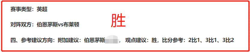 4、英超:伯恩茅斯vs布莱顿(胜)√:该场比赛伯恩茅斯的数据有阻力,毕竟面对的同是中游的球队,但笔者看准是高阻,因为布莱顿阵容不完整,残阵客场作战是不宜高估的,笔者预测主胜方向十分准确。