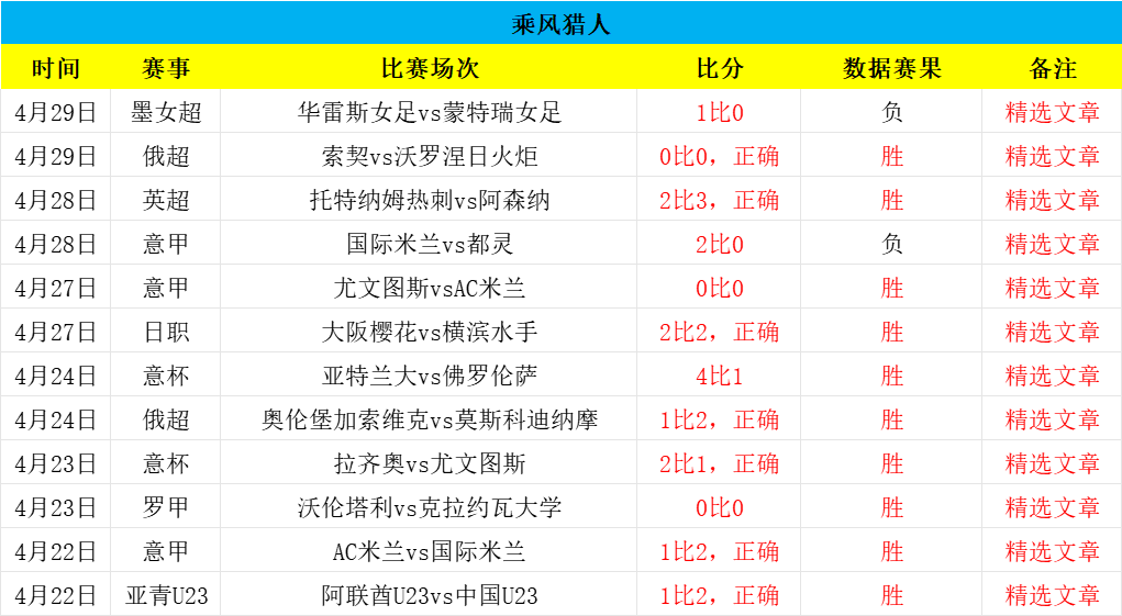 大家好,我是乘风猎人,职业数据分析师,足球经验丰富,研究足球数据数十载,期望能够乘风破浪,精准猎球制胜,欢迎朋友们长期关注!