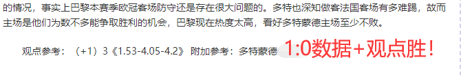 观点回顾为已完场赛事的统计,并不能代表未来的观点预测结果走势,观点仅为个人意见,与平.台无关。资讯仅供体育爱好者浏览,并不构成购.彩建议,任何人不得用于非法用途,请广大用户理性消费。