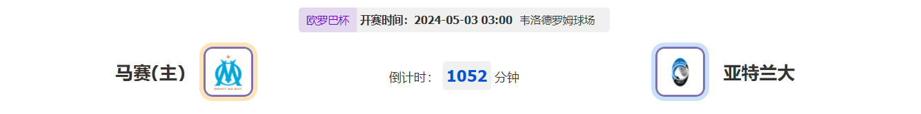 看点:马赛上一场联赛2-1战胜朗斯,此役欧罗巴杯赛能否延续联赛出色表现?亚特兰大近期各项赛事取得3连胜,此役作客能否延续强势表现?