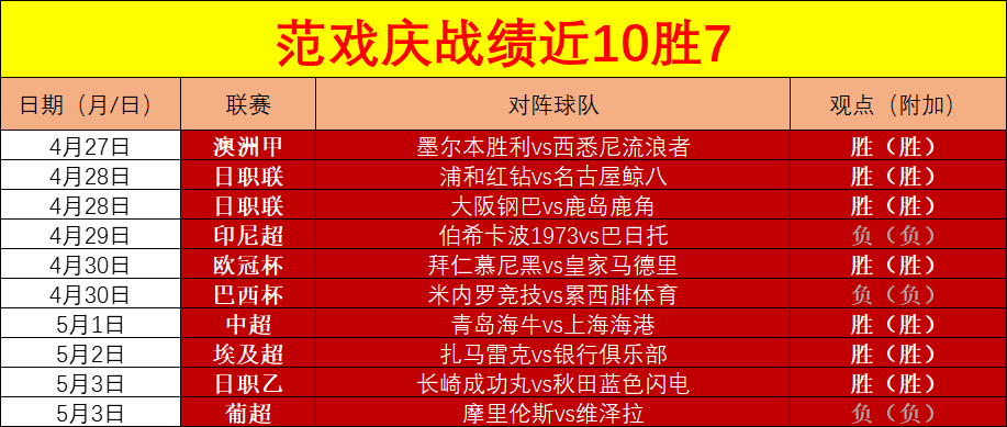 (温馨提示:观点回顾为已完场赛事的统计,并不能代表未来的观点预测结果走势,观点仅为其个人意见,与本.网无关。资讯仅供体育爱好者浏览,并不构成购.彩建议,任何人不得用于非法用途,请广大用户理性消费。)