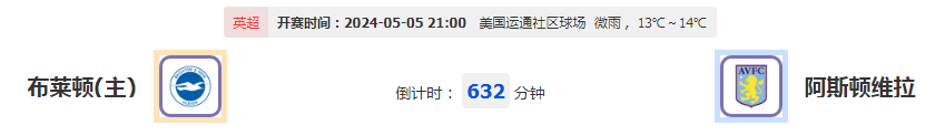 周日 赛事008:布莱顿vs阿斯顿维拉