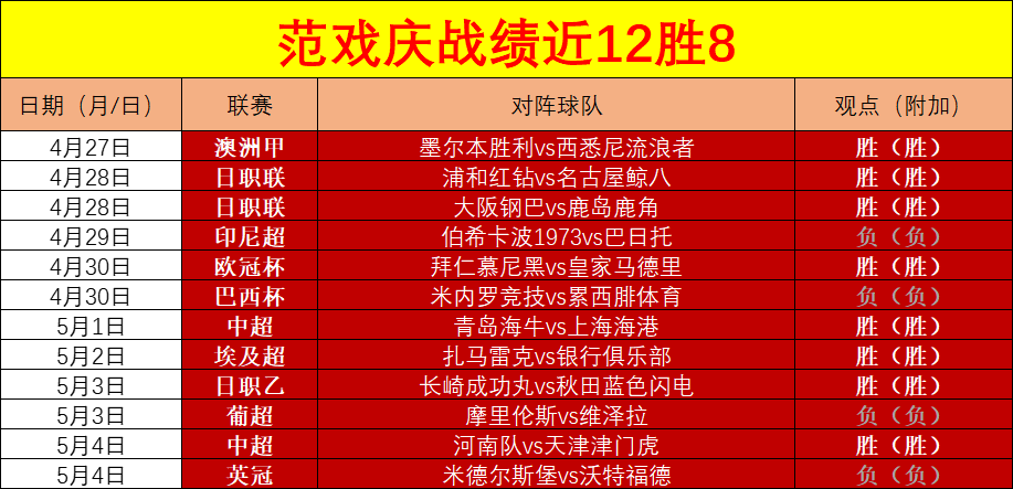 (温馨提示:观点回顾为已完场赛事的统计,并不能代表未来的观点预测结果走势,观点仅为其个人意见,与本.网无关。资讯仅供体育爱好者浏览,并不构成购.彩建议,任何人不得用于非法用途,请广大用户理性消费。)