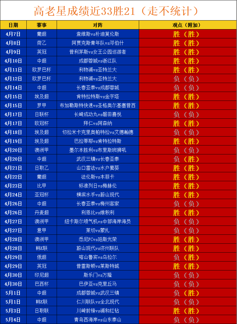 (温馨提示:观点回顾为已完场赛事的统计,并不能代表未来的观点预测结果走势,观点仅为其个人意见,与平.台无关。资讯仅供体育爱好者浏览,并不构成购.彩建议,任何人不得用于非法用途,请广大用户理性消费。)