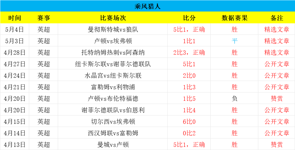 大家好,我是乘风猎人,职业数据分析师,足球经验丰富,研究足球数据数十载,期望能够乘风破浪,精准猎球制胜,欢迎朋友们长期关注!