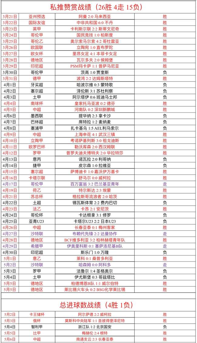 周日私推赞赏2场,完美全胜拿下,很舒服,私推赞赏近45负15,状态稳定!私推总进球数1场,中超轻松全胜,私推总进球数近5负1,状态出色!解锁文章2场,结果1胜1负,意乙战意判断错误,很可惜,解锁文章近52负18,还需努力!