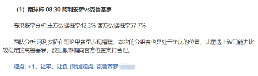 (温馨提示:观点回顾为已完场赛事的统计,并不能代表未来的观点预测结果走势,观点仅为其个人意见,与平.台无关。资讯仅供体育爱好者浏览,并不构成购.彩建议,任何人不得用于非法用途,请广大用户理性消费。)