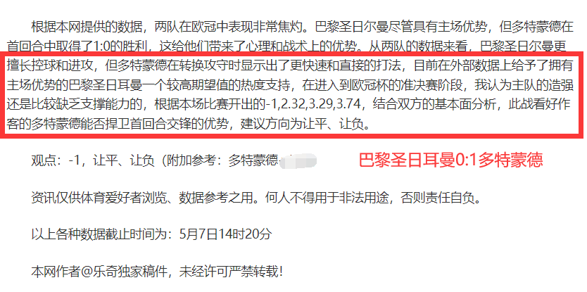(温馨提示:观点回顾为已完场赛事的统计,并不能代表未来的观点预测结果走势,观点仅为其个人意见,与平.台无关。资讯仅供体育爱好者浏览,并不构成购.彩建议,任何人不得用于非法用途,请广大用户理性消费。)