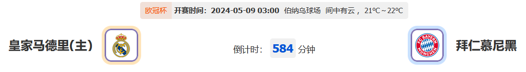 北京时间5月9日03时00分,欧冠杯2023-2024准决赛,皇家马德里vs拜仁慕尼黑,来自西甲霸主和德甲豪门的二回合交锋,双方在首回合为我们带来了一场酣畅淋漓的进球大战,本回合主客互易之后双方的形势会否发生太大变化?我们一起拭目以待!