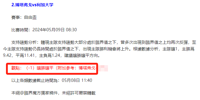 【解鎖內容為以上賽事支持趨勢預測圖展示,以及根據分析預測圖進行相對低機率方向觀點判斷。解鎖內容僅代表個人知識領域觀點,與本網站無關】