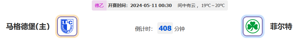 笔者昨天交出的两场比赛均出现一些造冷阻力无法顺利拿下,对前面丢失的赛程重新进行一些数据思路的整理,为了快速寻回往昔胜利的心气,本日带来一场德乙联赛的赛事,马格德堡vs菲尔特,希望能通过本场比赛的分析继续扩大胜利优势,得到各位的认可,和大家分享更多更好的见解,有望各位多多支持!