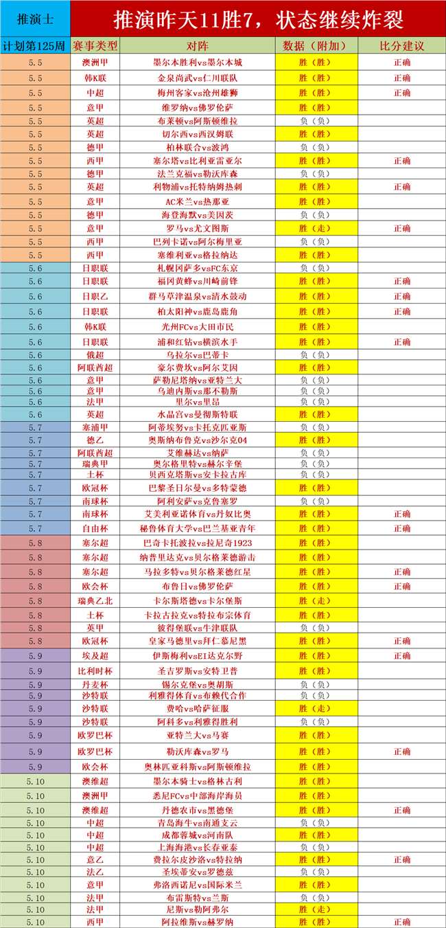 3、推演士计划第124周完美结束,上周保持稳定,预测12场比分正确,持续的保持了高效的稳定(走不纳入统计)。
