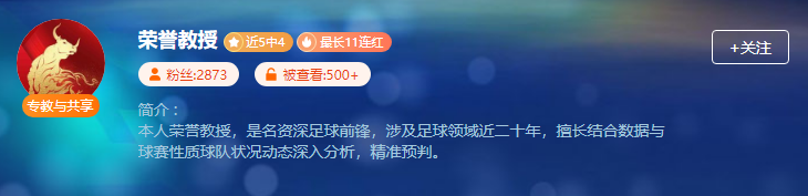 战绩回顾:教授昨天3场取得2胜,近期5中4表现不俗,实力一如既往稳定,今天再走着瞧吧!