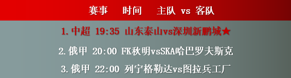 1.山东泰山vs深圳新鹏城★,山东泰山赛季11轮比赛取得6胜3平得分表现,攻守端数据发挥比较稳定,前场交出了场均1.8个的比较优秀进球数据,作为中超联赛传统的上半区争冠劲旅,山东泰山本赛季前期处于一个联赛和亚冠双线作战的奔波状态,联赛的抢分进程也受到了不少的阻力导致未能及时回到上半区的争冠名次,在上一场比赛里,山东泰山作客1:2战胜了实力大不如前的武汉三镇,从4月下旬至今的5轮比赛里取得4胜1平不败连续得分,逐渐爬升回到了联赛的第5名次,本轮主场迎战对手是深圳新鹏城,后者赛季11轮比赛取得2胜3平得分表现,攻守端数据发挥严重失衡,得失比超过1:2,虽然前场交出了比较的场均1个进球数据,但是作为本赛季的升班马队伍,球队的赛季防线强度远远未能赶上比赛节奏,虽然在赛季前期球队一度作客击败了北京国安和河南队等实力不俗的队伍,但是后面的赛程球队弱点可谓是展现无遗,从4月中旬至今深圳新鹏城的6轮比赛未尝一胜,防线合计失球高达16个,积分榜位置也几乎是停滞不前,目前深圳新鹏城只有9个积分处于联赛的靠后位置,虽然暂时处于联赛的安全区以内,但仍是不宜过分高估的赛季队伍之一。