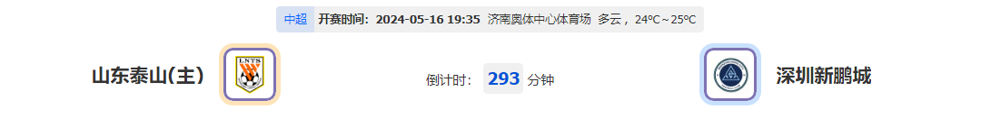 北京时间05月16日19:35,2023-20242024 中国超级联赛:山东泰山vs深圳新鹏城,两队实力有一定差距;今天的比赛主要的看点就是深圳新鹏城有保级压力,今天作客去到山东,能抢到分数吗?能否守住数据吗?