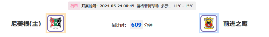 北京时间05月24日00:45,2023-2024 荷兰甲组联赛,尼美根vs前进之鹰,两队目前状态普普通通,今天比赛到底哪一队更胜一筹?