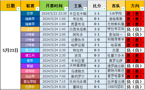 昨天数据表现出色,整体15胜9,净增+3!昨天数据中,早场的表现炸裂,3场全部完美的大获全胜拿下,非常的惊人!晚场的沙特联表现也非常的两眼,整体3胜2!当然德乙、意甲和荷甲的表现都非常的完美,3场全部完美的大获全胜拿下,非常的给力!夜场的乌拉甲表现不错,进球数完美的拿下!