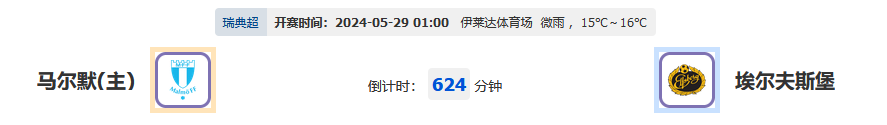 北京时间05月29日01:00,2024 瑞典超级联赛,马尔默vs埃尔夫斯堡,马尔默目前处于联赛榜首位置,今天比赛坐镇主场是否可以继续保持胜利?