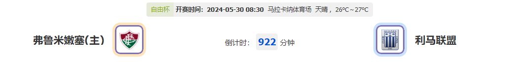 北京时间2024年5月30日08:30,自由杯小组赛:弗鲁米嫩塞vs利马联盟,弗鲁米嫩塞目前处于小组第一名位置,今天比赛两队会有怎样态度呢?