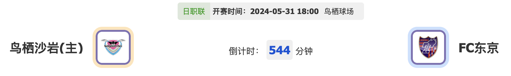 北京时间5月31日下午18:00,J联赛第17轮的比赛将会继续展开,鸟栖砂岩队将会在主场迎来东京FC队的挑战,球队能否在主场顺利拿下分数呢?