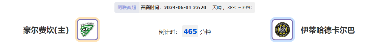 北京时间2024年6月1日22:20,阿联酋职业超级联赛即将迎来一场焦点对决,由主场作战的豪尔费坎迎战伊蒂哈德卡尔巴,这场比赛对于两队都至关重要,因为它不仅影响到球队的联赛排名,还关系到球员们的状态和士气,让我们来看本场胜利究竟会花落谁家?