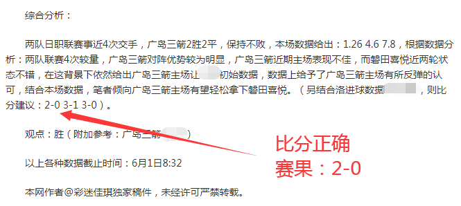 昨日日职联赛事:广岛三箭主场2-0零封磐田喜悦,比分方向完美打出;另外欧冠决赛:多特蒙德0-2不敌皇家马德里,比分方向再次完美打出。