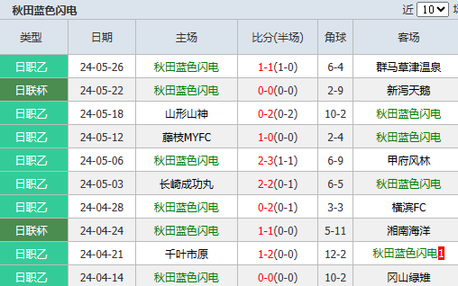 2、在上轮比赛主场与群马草津温泉1-1握手言和后,近6轮联赛下来,秋田蓝色闪电只是取得1胜2平3负的成绩,球队的攻守能力都还有待进一步提升。