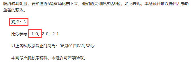 观点回顾为已完场赛事的统计,并不能代表未来的观点预测结果走势,观点仅为其个人意见,与平.台无关。资讯仅供体育爱好者浏览,并不构成购.彩建议,任何人不得用于非法用途,请广大用户理性消费。