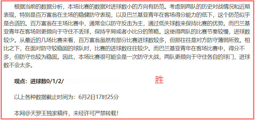 (温馨提示:观点回顾为已完场赛事的统计,并不能代表未来的观点预测结果走势,观点仅为其个人意见,与平.台无关。资讯仅供体育爱好者浏览,并不构成购.彩建议,任何人不得用于非法用途,请广大用户理性消费。)