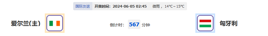 北京时间06月05日02:45,国际友谊赛:爱尔兰vs匈牙利,爱尔兰近期表现低迷,今天面对状态火热匈牙利会有怎样态度?