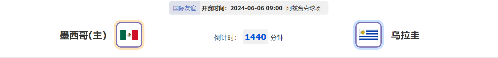 美洲的国际友谊赛事今天展开激战!由北美洲传统强队墨西哥对阵南美洲传统强队乌拉圭,本场比赛将在北京时间06月06日早上09点00分打响,本场比赛两个球队会拿出什么样的表现呢?