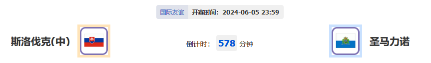 北京时间2024年06月05日23:59,斯洛伐克将在特赫内球场迎战圣马力诺,进行一场国际友谊赛。双方历史对赛成绩显示圣马力诺胜.率极低,本场比赛也是进一步展现两队实力差距的一次机会。