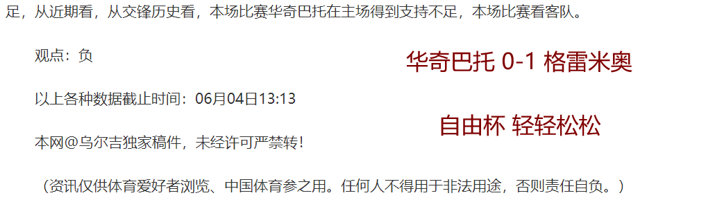 (温馨提示:观点回顾为已完场赛事的统计,并不能代表未来的观点预测结果走势,观点仅为其个人意见,与平.台无关。资讯仅供体育爱好者浏览,并不构成购.彩建议,任何人不得用于非法用途,请广大用户理性消费。)