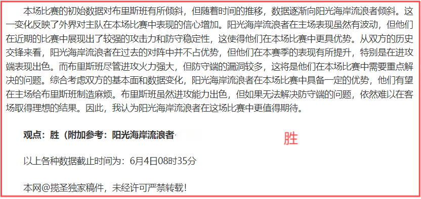 (温馨提示:观点回顾为已完场赛事的统计,并不能代表未来的观点预测结果走势,观点仅为其个人意见,与平.台无关。资讯仅供体育爱好者浏览,并不构成购.彩建议,任何人不得用于非法用途,请广大用户理性消费。)