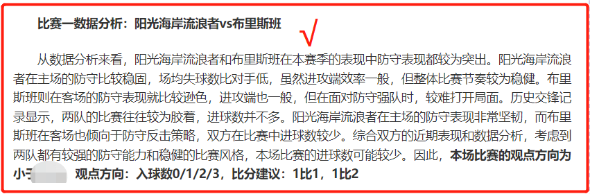 (温馨提示:观点回顾为已完场赛事的统计,并不能代表未来的观点预测结果走势,观点仅为其个人意见,与平.台无关。资讯仅供体育爱好者浏览,并不构成购.彩建议,任何人不得用于非法用途,请广大用户理性消费。)