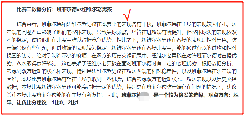3、观点建议没有局限性,胜负以及进球均以大方向和胜.率为主。
